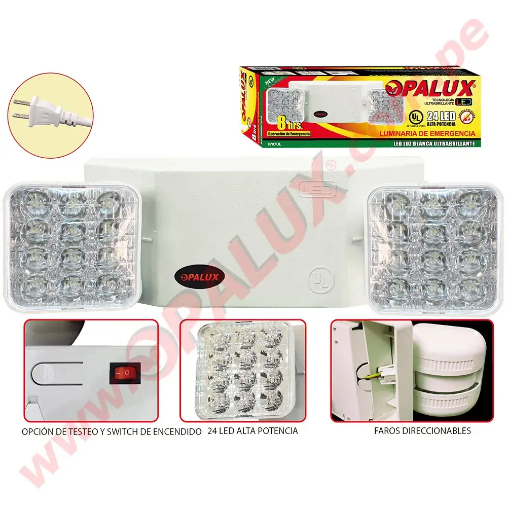 9707UL Luz de Emergencia OPALUX de 24 LED certificado UL Internacional 90MTS 2 Años de garantía, cumple con INDECI