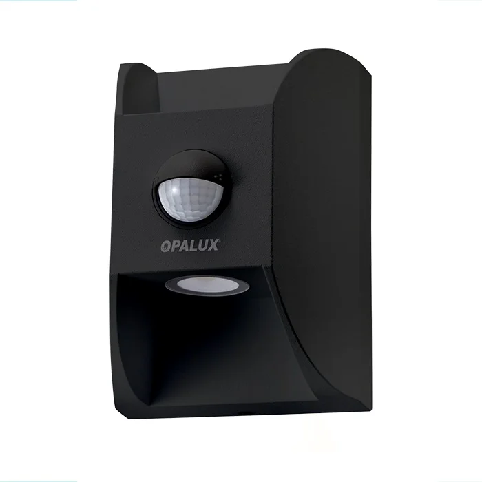 APLIQUE LED PARA PARED INTERIOR Y EXTERIOR “OPALUX” 3000K CON SENSOR DE MOVIMIENTO IP54 140° IP65 20W 2000LM NEGRO