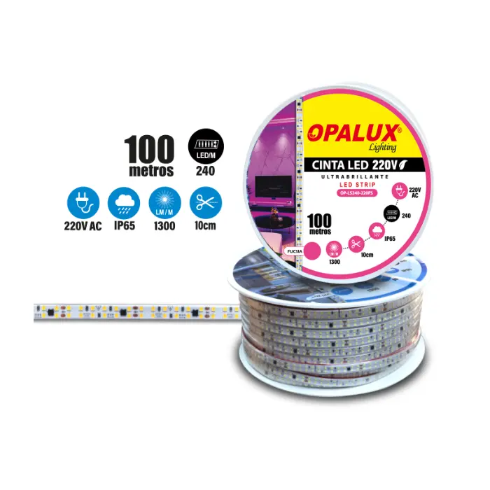 Be the first to review “CINTA LED IP65 “OPALUX” 220V AC 1300LM COLOR FUCSIA 240LEDS 100MTS.”
