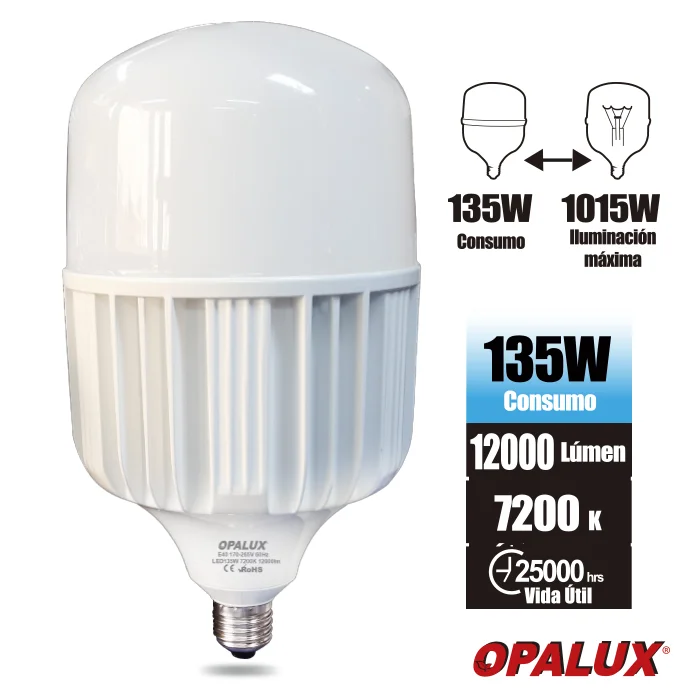 FOCO BOTELLA 135W T/BOTELLA “OPALUX” , 7200K, 12000LM, E40, 170-265V