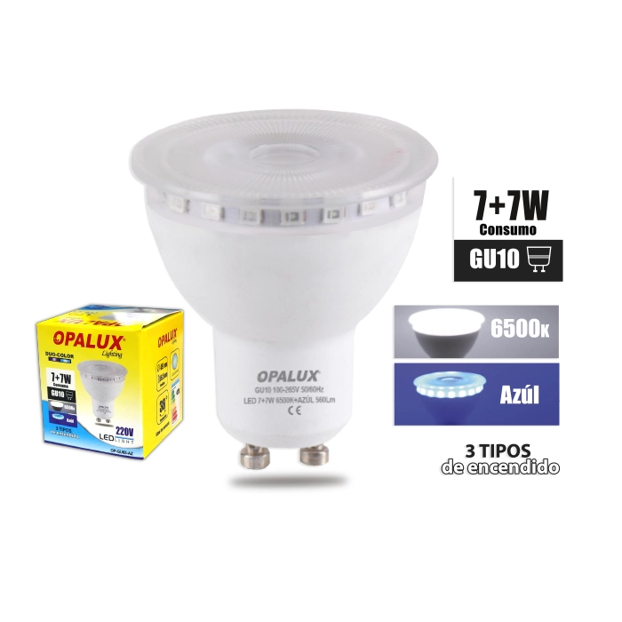 FOCO DICROICO DUO COLOR 6500K + AZUL 7W “OPALUX”