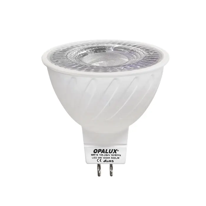 FOCO DICROICO LED 9W LUZ CALIDA MR16 60° “OPALUX” 800LM 3000K 185-264VAC Ø5CM 5.4CM ALTO.CJX100