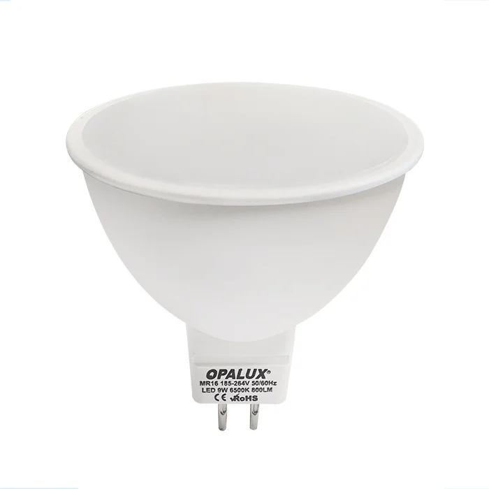 FOCO DICROICO LED 9W MR16 120° LUZ BLANCA “OPALUX” 800LM 6500K 185-264VAC Ø5CM 5.4CM ALTO.CJX100