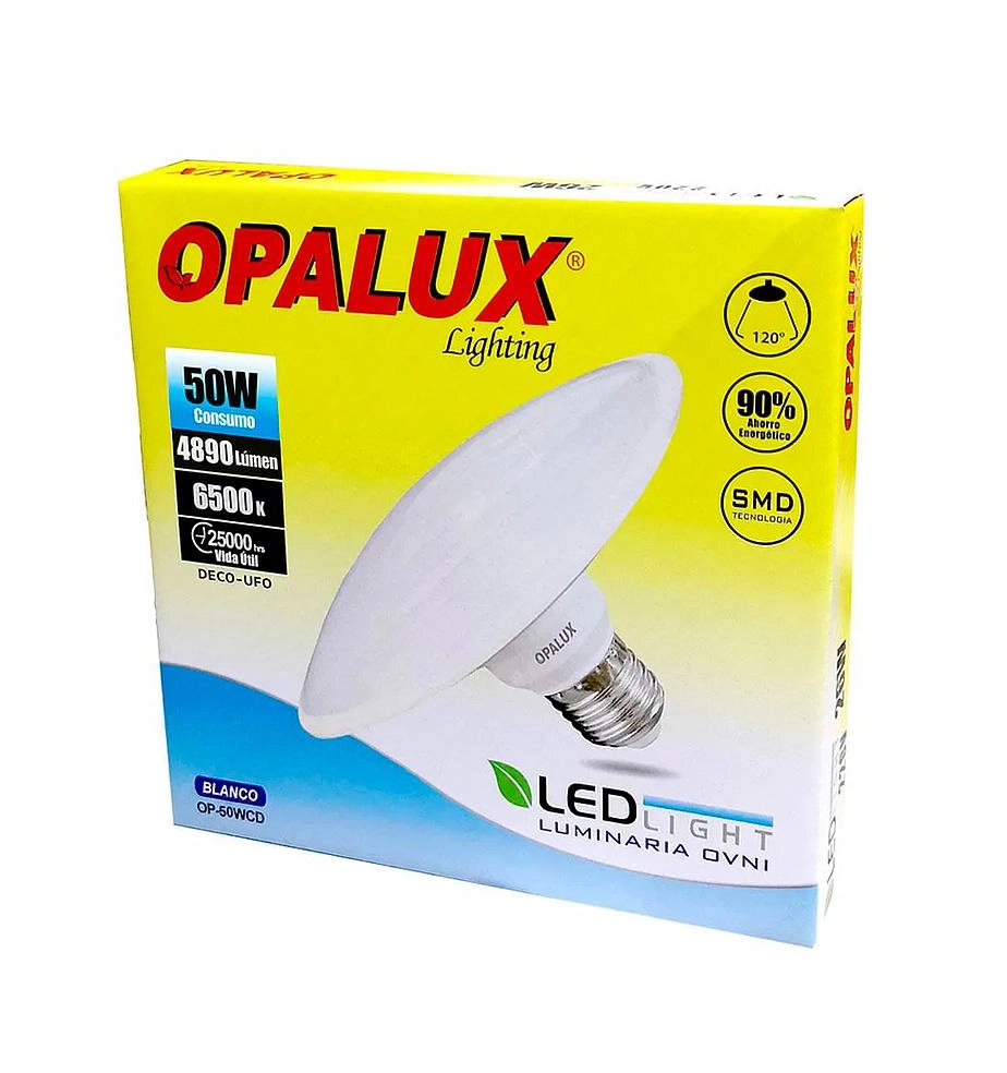 FOCO UFO 50W OPALUX 4890LM 7000K LUZ DIA 160° 220V