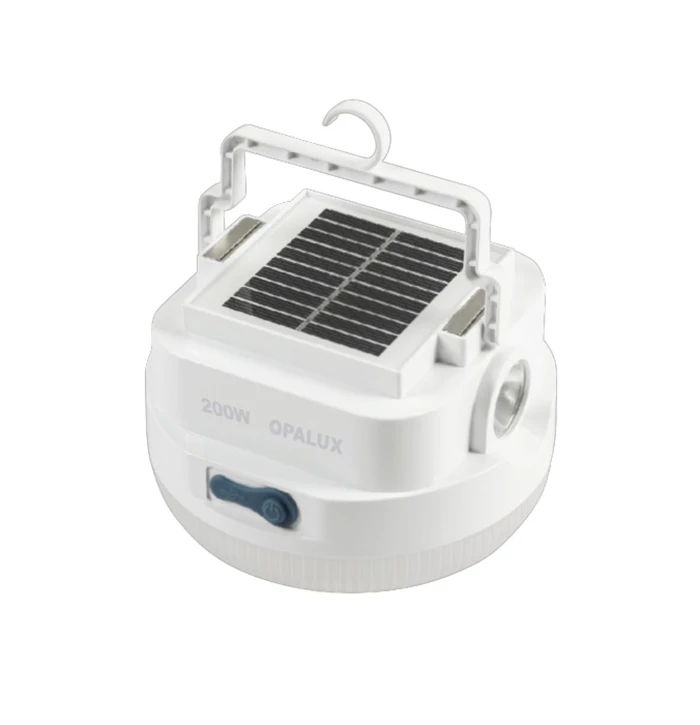 LAMPARA CON LINTERNA PÓRTATIL RECARGABLE CON PANEL SOLAR 200W “OPALUX” 12000K