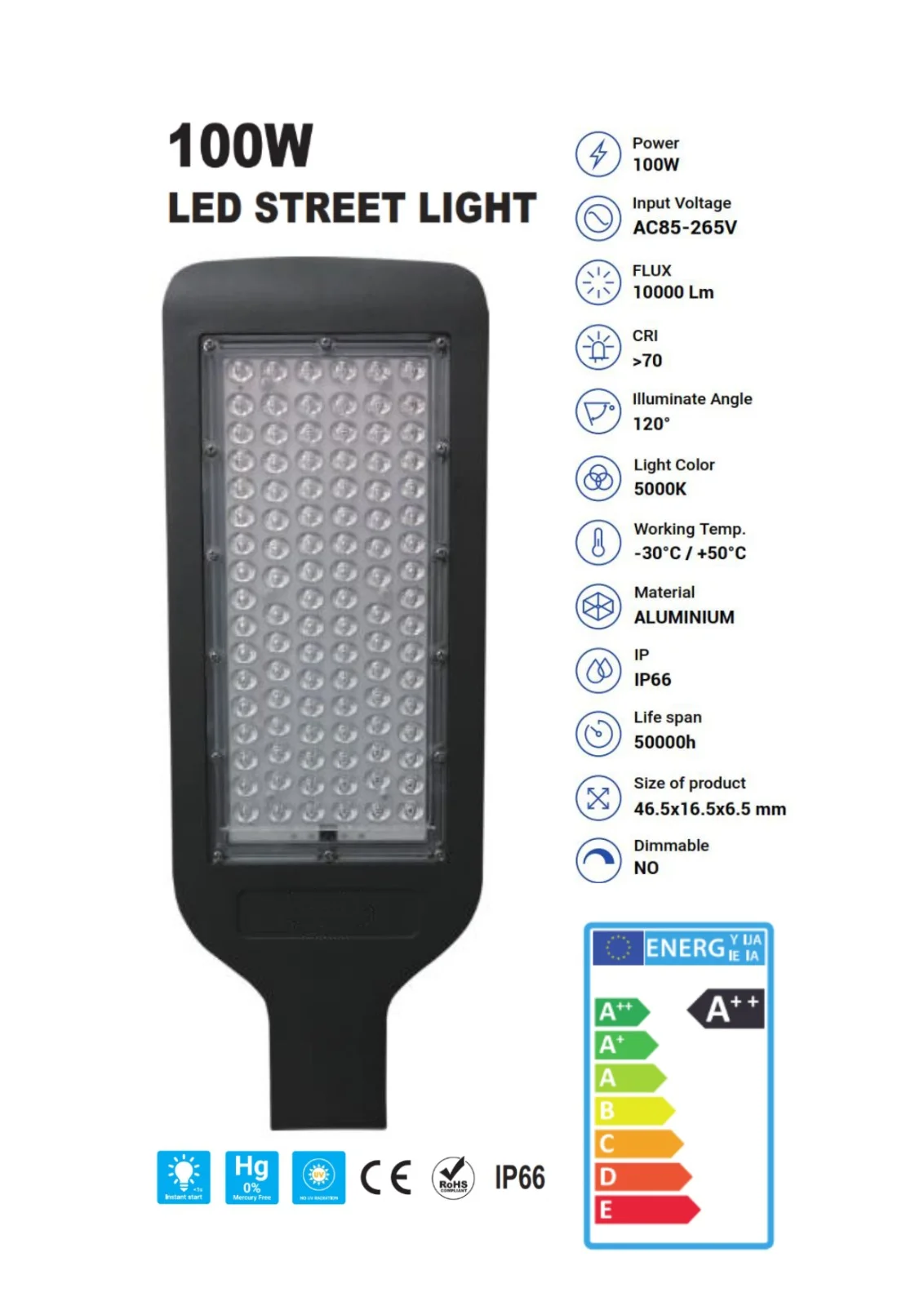 LUM- DE ALUMBRADO PUBLICO LED 100W IP66 >100LM/W AC220V 5000K – JL
