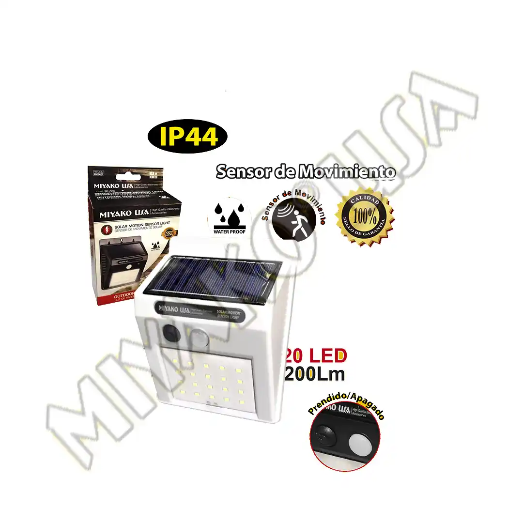 LUZ DE PASO SOLAR LED 3W MIYAKO USA 200LM CON PANEL SOLAR Y SENSOR DE MOVIMIENTO IP64 USO EXTERIOR COLOR BLANCO