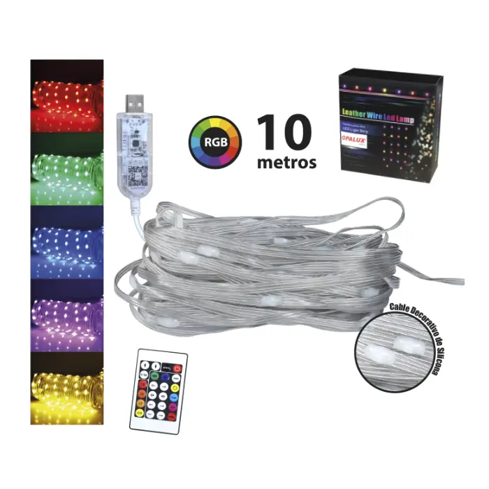 LUZ LED USB DECORATIVA 50 LED RGB 10 MT C/CONTROL MASTERX120