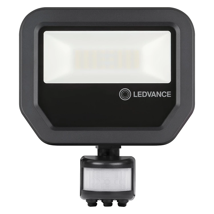- Compacto y con un encantador acabado en negro, el LEDVANCE FLOODLIGHT SENSOR está destinado a la iluminación de ambientes exteriores. El modelo dispone de un LED de alta eficiencia y un sensor con tres funciones simultáneas: presencia, fotocélula y temporizador. Su rápida y sencilla instalación elimina la necesidad de lámparas adicionales y, gracias al sensor, garantiza un importante ahorro energético. Disponible en versiones de 3000K (luz amarilla) y 5000K (luz blanca), reemplaza los proyectores tradicionales equipados con lámparas halógenas tipo portaminas y proporciona hasta un 90% de ahorro energético. Sin igual, el LEDVANCE FLOODLIGHT SENSOR llegó al mercado para redefinir el concepto de luminarias de exterior.