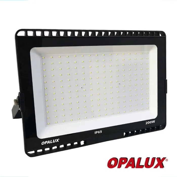 REFLECTOR SLIM 192LED SMD 17,000LM “OPALUX” 200W 85-265V AC LUZ CALIDA 3000K COLOR NEGRO IP-65 DURACION 50,000 HORAS CJX5