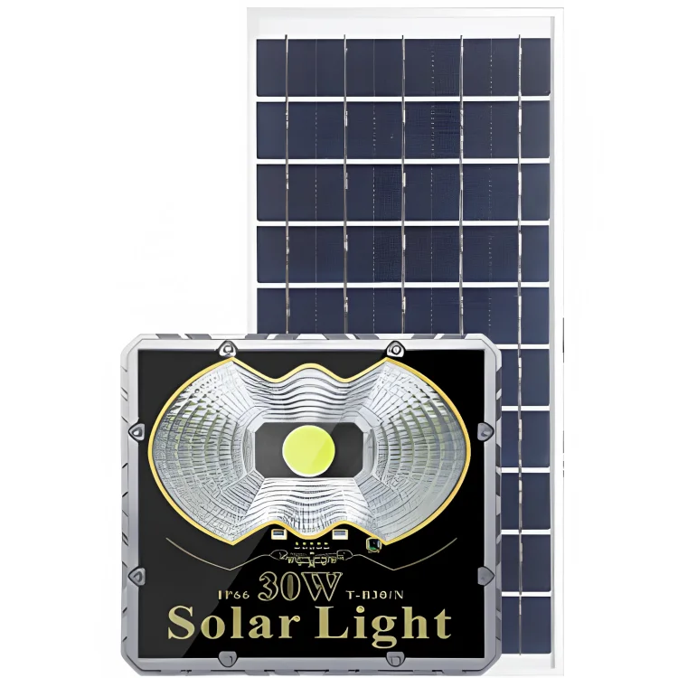 REFLECTOR SOLAR LED 30W / BATERIA DE LITIO /450 Lm / IP 65 /40m3/ T.C. 5H / T.D. 12 H / PROTECCION CONTRA RAYOS / PANTALLA DE POTENCIA